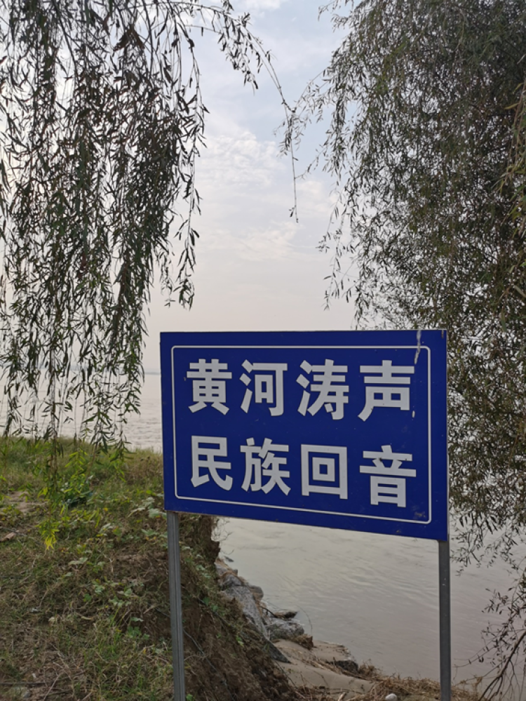 一排垂柳遮住了宽阔河面上折射来的刺眼霞光。岸边立着一个简易木牌子,上书八个大字赫然醒目:“黄河涛声,民族回音”,顿时让人肃然起敬。思绪瞬间穿越过晋陕甘宁的黄土高原,闪念过千年的远古战争和繁荣。踏上十余米高的桥头遗址,这里在解放初期曾经建造过一座桥坝,但因规划设计不周,未及通车就在第一次大洪水中炸掉了。现如今,只留下这个土堆默默地讲述着曾经的梦想和期盼。看后一阵唏嘘。