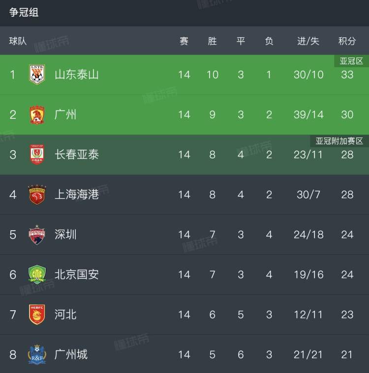 相对而言,山东泰山因为积分上的优势有足够的容错率。输一场球,或者是平两三场,基本不会对他们领头羊的位置有太大的影响。