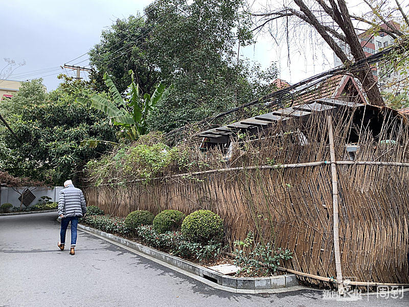 位于乔家路113号的梓园,建筑外部做了和平浴室的场景搭建(蔡震拍摄于2021年12月1日)