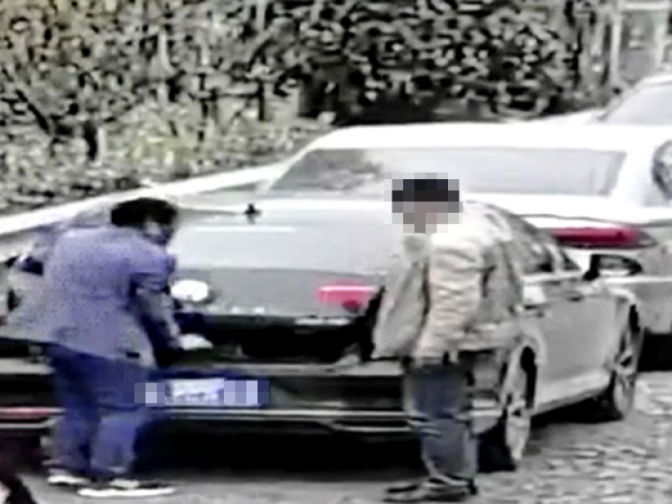 就在此时,一名自称是该车司机朋友的男子急慌慌地赶来,但面对民警的询问,该男子则声称自己与司机俱不知情,并表示可能是途经此处的路人“恶作剧”为之。但民警通过查阅该路段公共视频后,发现该车是当日下午抵达并停放于此的,当时司机停完车后却未就此离开,而是打开了后备箱,取出一块白色长布在车牌上比划了一阵,似乎都不能令他满意,便将白布重新放回后备箱,转而又拿出一只口罩“戴”了上去,这才与同伴一起“心满意足”地离开了。