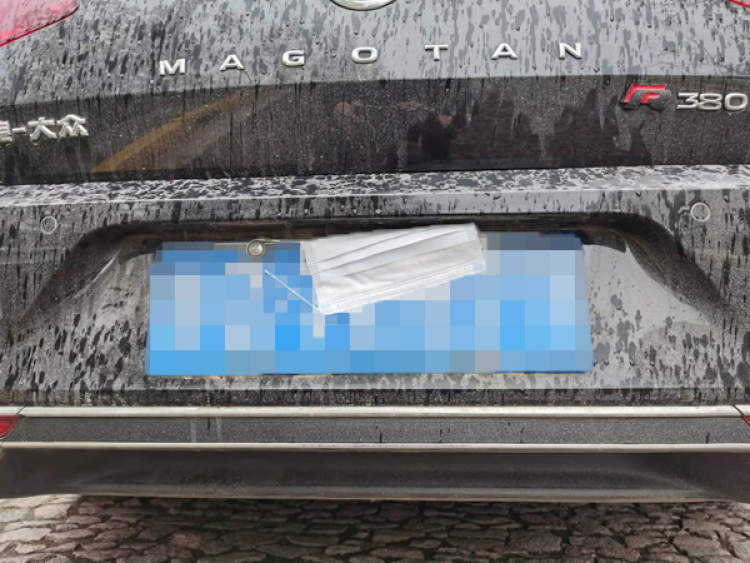 11月28日15时15分许,娄塘派出所民警在巡逻期间,忽然发现停放于南新路、人民街路口北侧的一辆黑色小轿车车尾号牌上,不知何故竟然“戴”着一个口罩,而口罩的位置恰好遮盖住了车牌当中的两位数字,遂停车后上前调查情况。