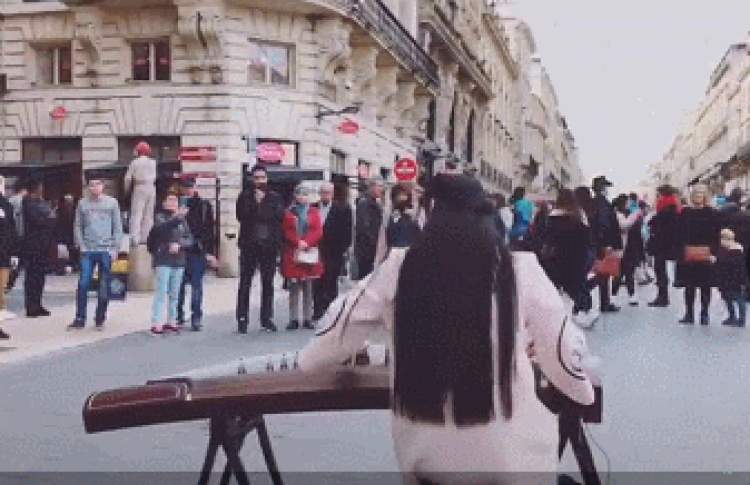 一身汉服,一人一琴,忘情演奏。古老的东方文化在法国绽放,无论是演奏还是装束,都深深地惊艳了围观的路人。
