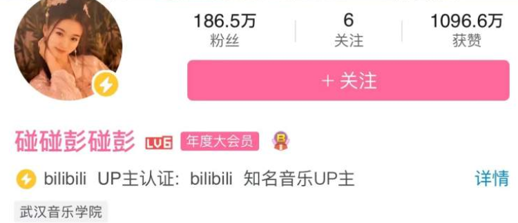 △截至12月9日,彭静旋在b站已拥有186.5万粉丝