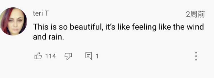 这个(音乐)听起来真的太美妙了,感觉就像微风和细雨拂过我的脸。