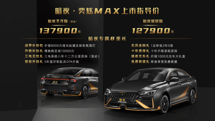 想要赛道传奇般的性能?还想要黑金点满的战甲外观与造型?要求统统满足!作为中国首款量产机甲战车,暗夜·奕炫MAX有着“中国心”十佳发动机荣誉的马赫动力及马赫混动(MHD),零百加速仅需6.81秒。此外,暗夜·奕炫MAX在底盘武装上基于DSMA高级模块化架构打造,由CTCC冠军战队调校底盘,四轮独立悬挂带来强势无比的操控,同样表现出了强大的赛道性能。