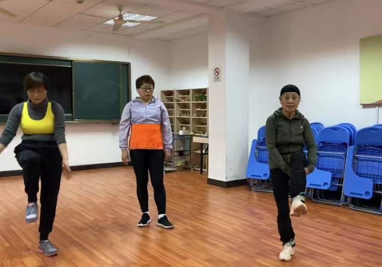 来报名上课的大部分都是五十岁以上的人群,陈奶奶说,中老年人健身首先是要保证安全,其次再考虑动作,做动作要根据每个人身体量力而行,不求有多标准。她还鼓励大家即使没有专业器材,同样能变废为宝,比如不穿的弹力裤袜拿来做拉伸,不用的小毯子可以捆起来做力量运动……