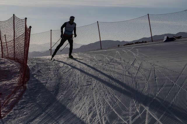这是吐尔松江·布尔力克在新疆温泉县越野滑雪场训练(2021年11月25日摄)。