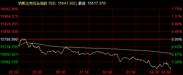 来看美股隔夜的具体数据,至收盘,道琼斯工业平均指数下跌0.06点,跌幅0.00%,收报35755点;纳斯达克综合指数下跌269.62点,跌幅1.71%,收报15517点;标普500指数下跌33.76点,跌幅0.72%,收报4667点。