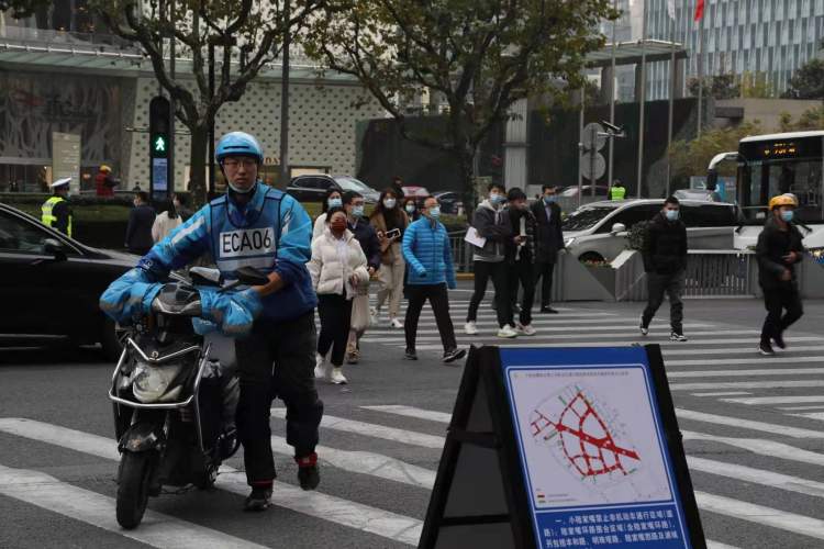 骑手张群是专门负责小陆家嘴区域内外卖接派送业务的骑手。以往进入小陆家嘴送餐,一进入陆家嘴环路,就要时刻紧绷神经,今天,张群在路口“P+W”停车点停好车,徒步穿过陆家嘴环路,他在滨江大道某咖啡店取餐,然后要送至国金中心,从临时停车点到国金中心跨过马路就2分钟步行时间。