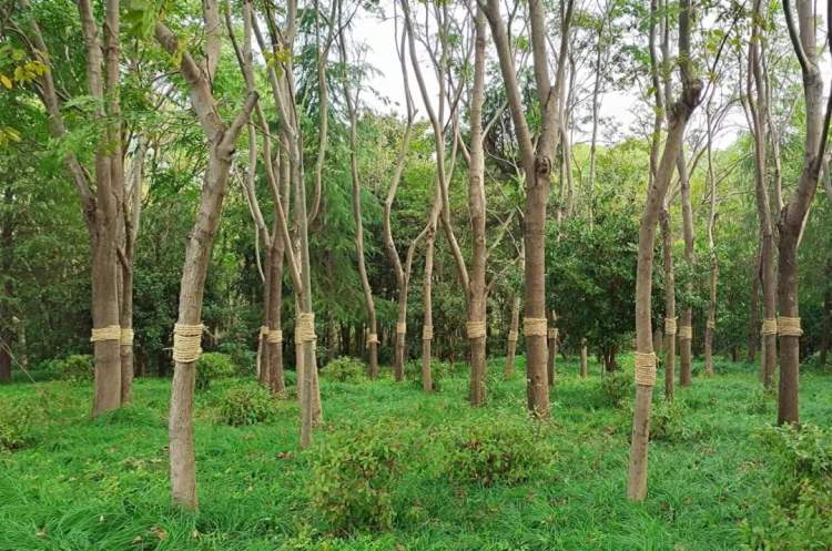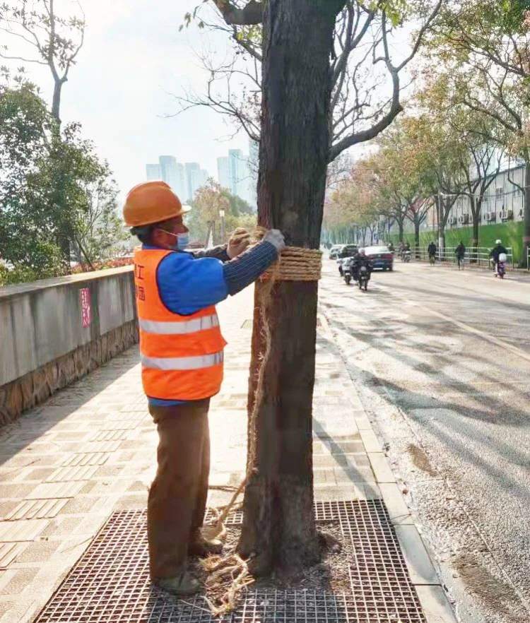 给热带植物包裹保温材料有多种作用。冬季气温低、天气干燥、降水较少,树木在生长时可能得不到充足的水分补给,容易造成大量水气蒸腾,包裹保温材料可以减少蒸腾,为树木保存水分。同时,可以预防树木出现低温冻害,避免叶子干枯甚至可能导致树木死亡的情况。此外,包裹材料后能对病虫害进行隔离,减少来年开春病虫害对植物的危害。