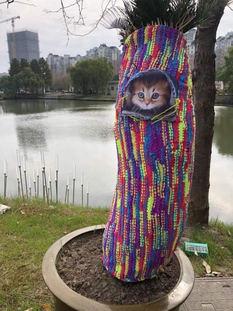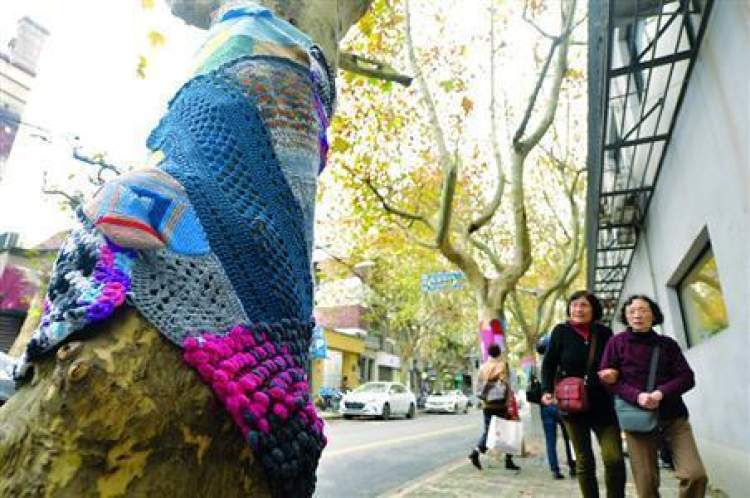 给小树“穿衣”并不是第一次出现在申城。2015年,黄浦区陕西南路、南昌路附近的法国梧桐树穿上了五颜六色的毛衣。是当时在沪上一所幼儿园任教的菲律宾姑娘Mae和她来自英国、美国、澳大利亚等地的朋友们编织的,耗时一个月。据称这种给植物“穿毛衣”的行为被称为“针织涂鸦”,在海外颇为流行。不过,从树种来说,悬铃木(俗称“法国梧桐”)在沪过冬不需要保暖。