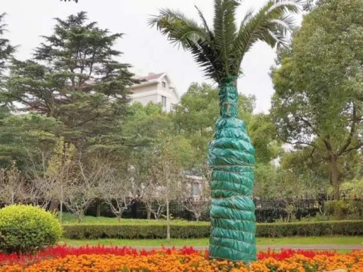 绿化专家介绍,像加拿利海枣等部分热带植物不耐寒,遇到持续的极端低温可能出现冻害,所以,每年申城有一部分热带植物都要提前包裹保温材料,通常是草袋、黑网等。