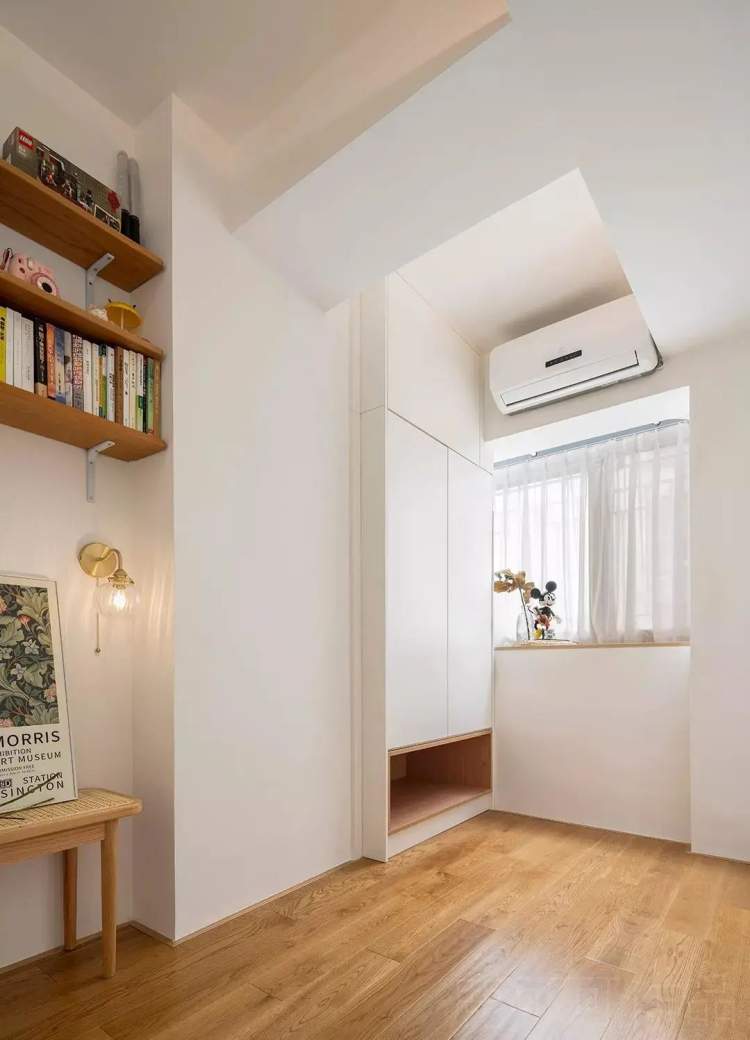 原本入户无玄关,入住之前有一个小过道是专门通向这一户的,经过物业同意,将过道空间纳入室内。