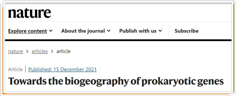 北京时间2021年12月16日凌晨,复旦大学研究团队参与研究的相关成果《原核生物基因的生物地理学研究》(“Towards the biogeography of prokaryotic genes”)以长文(Article)形式发表于《自然》(Nature)主刊。