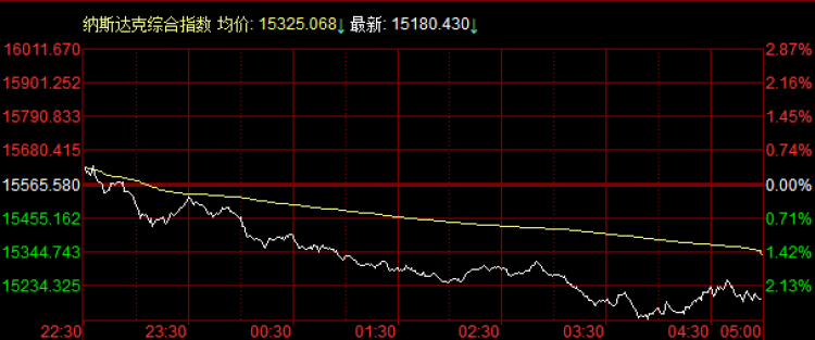 来看美股隔夜的具体数据,至收盘,道琼斯工业平均指数下跌29.79点,跌幅0.08%,收报35898点;纳斯达克综合指数下跌385.15点,跌幅2.47%,收报15180点;标普500指数下跌41.18点,跌幅0.87%,收报4669点。