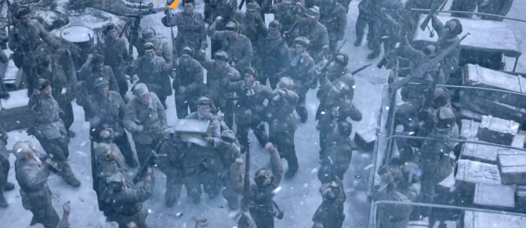 作为首部“全景式、史诗性”展现抗美援朝战争的电影,《跨过鸭绿江》不仅具备东西两线和五次战役的全时空格局,宏观勾画两水洞、黄草岭、飞虎山、三所里、松骨峰、长津湖、汉江、铁原、上甘岭等标志性战役和战斗的全貌,还呈现了突袭战、防御战、运动战、阵地战和坑道战等多场不同特质的战斗场面。