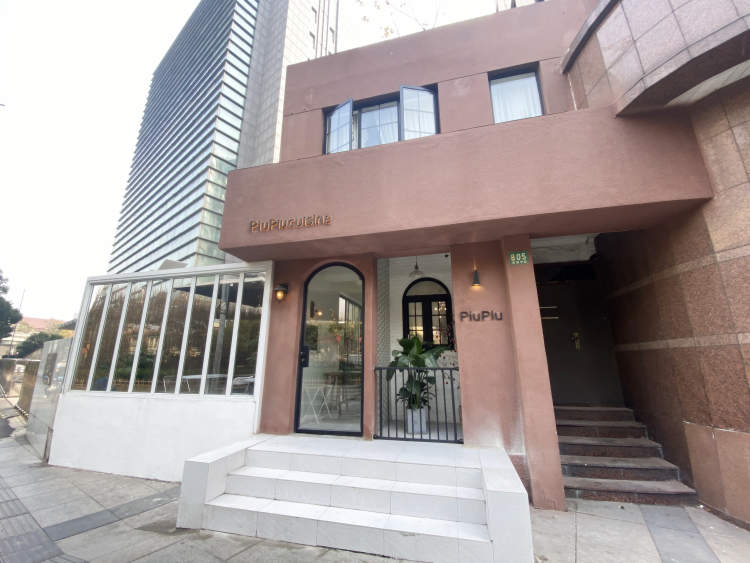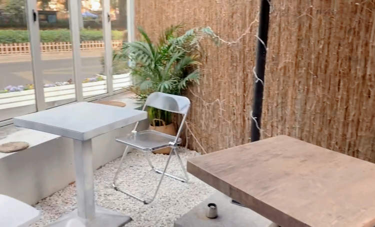 新店坐落于一栋楼的裙楼,有种二层小独栋的感觉,还自带一个小小的庭院。