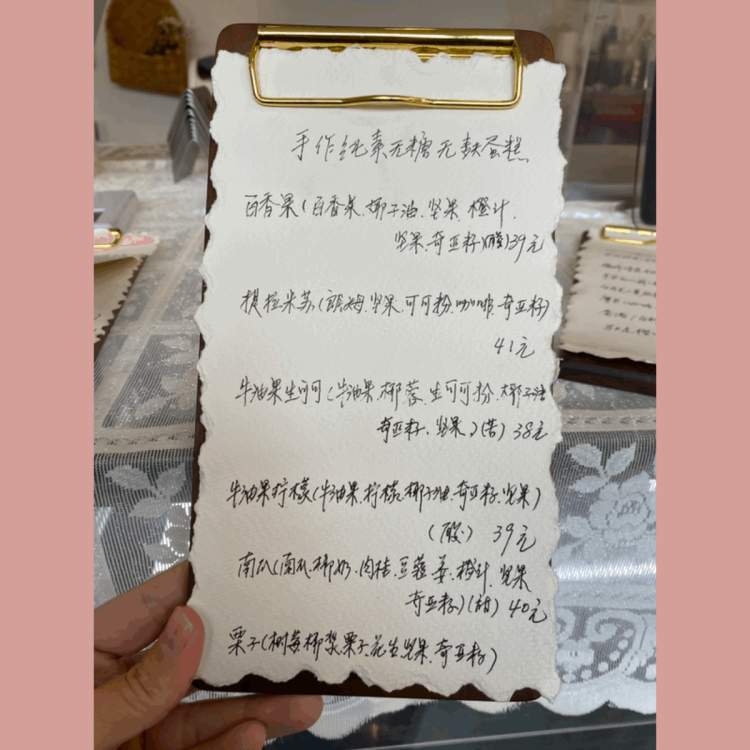 至于甜品蛋糕,店里的主打则是生酮蛋糕,主要是手作纯素无糖无麸蛋糕,有南瓜、栗子、百香果、牛油果等口味。