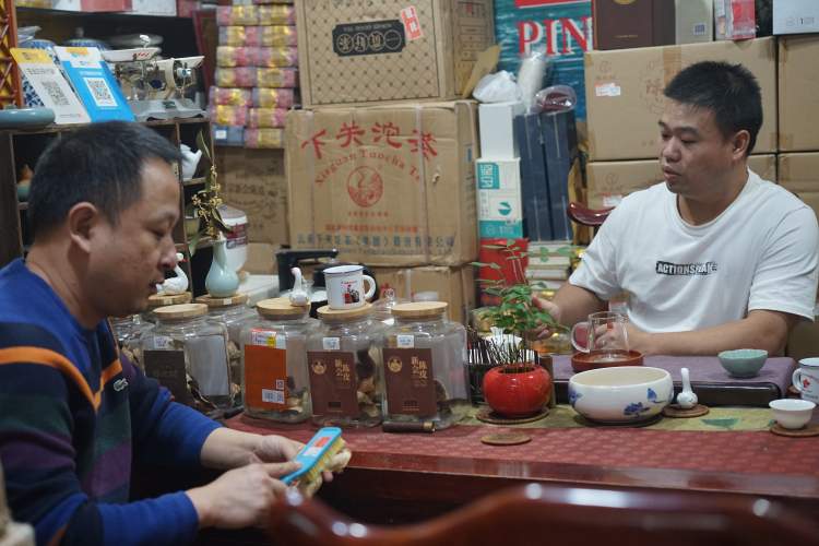 “我们这里的茶商大都是老面孔,做的都是回头客的老生意,市场里有一半以上的铺主是从市场建立之初就入驻进来的,守铺至今。”滕迪克说。