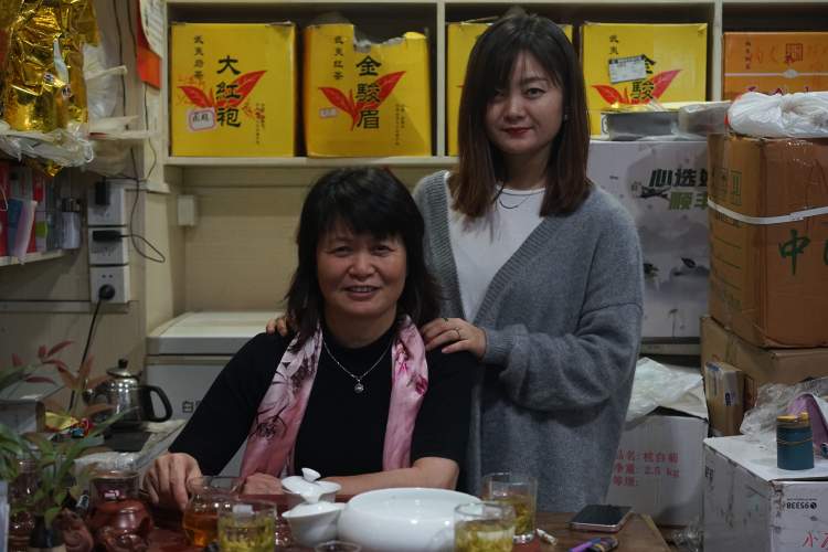 2005年来市场打拼的江苏人李中芹,56岁,以经营绿茶为主,以个人信誉为IP积累了一批忠实茶友,以茶会友的她,总会为茶友们准备物超所值的茶礼,深得茶友信赖。她的女儿成人后,选择向母亲学做生意,也在市场开了一家茶铺,以年轻人的方式把生意经营得颇有起色。