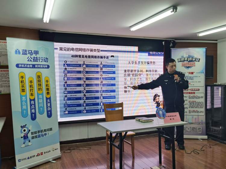 12月17日,由新闻晨报·周到、蓝马甲和杨浦公安分局反诈专班、中原路派出所联合举办的“反诈防范宣传公益课”,来到殷行街道城市庭园居委会。