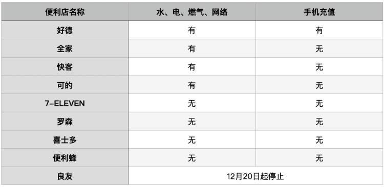 本月20日起,良友也将停止代收水、电、燃气等费用。周到君了解到,好德、全家、快客、可的仍可缴纳这类费用,但另外一些知名便利店则不提供这类服务。