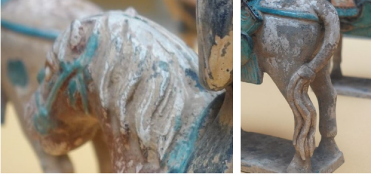 这批陶马的修饰与打扮(例如,马鬃向两边分开垂于马脖上,长长的马尾系缚后位于后蹄一端),与唐三彩中折射出的唐代审美是极为不同的,能够反映出明代的全新时代潮流,有时甚至是科技发展。