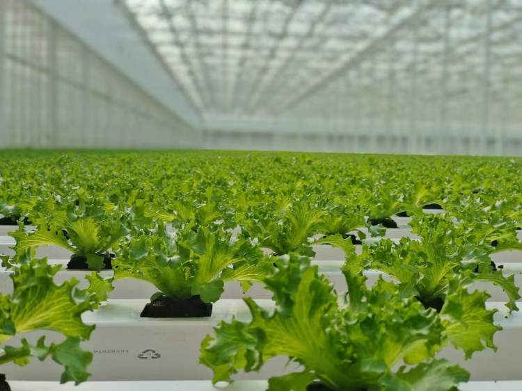 由由中荷现代农业创新园里,吸收营养液长大的生产。