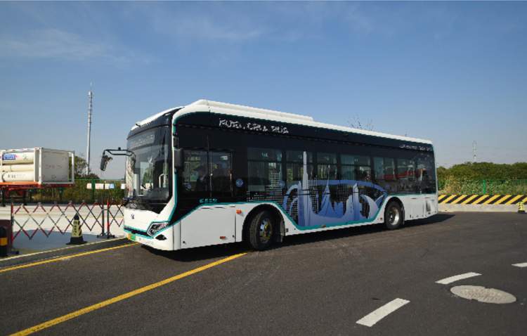 搭载临港氢能企业氢晨生产的燃料电池电堆,氢能源公交具有环保性能佳、转化效率高、加注时间短、续航里程长等优势。与传统车相比,燃料电池城市客车的能量转化产物仅为电、热和水,实现了零排放、零污染。此外,该车还配备了一系列智能化辅助驾驶系统和设备,360全景环视系统、碰撞预警系统、盲区监测系统等,保障驾驶员行车安全。