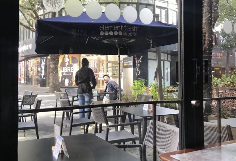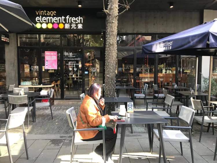 新元素新天地店位于在新天地北里的建筑群中,有上下三层和室外座椅区。