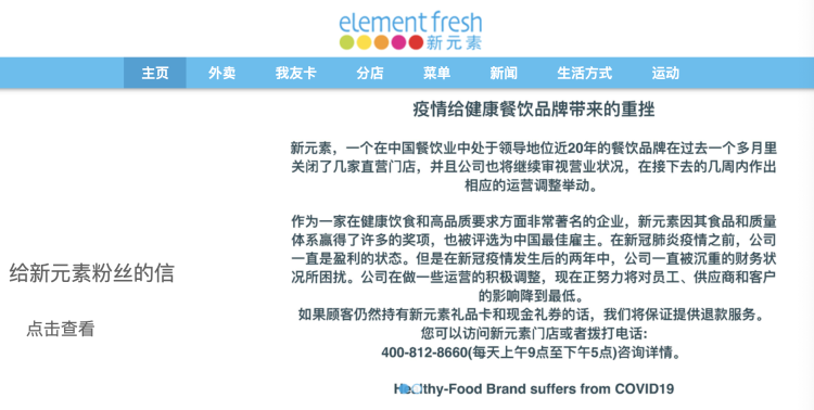 根据网上流传的一份公司通知,受新冠疫情影响,新元素运营遇到巨大困难,即将进入破产清算,所属门店将陆续关闭。同时,接受顾客退卡。