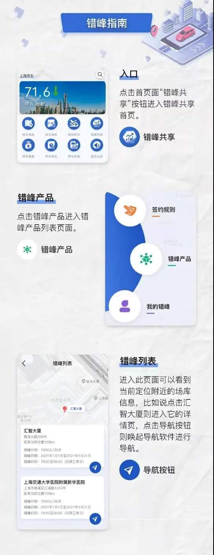 目前,“错峰共享”一键签约功能已上线153个项目,市民们都可以登录上海停车APP,轻松找到身边的共享停车资源,线上一键签约。