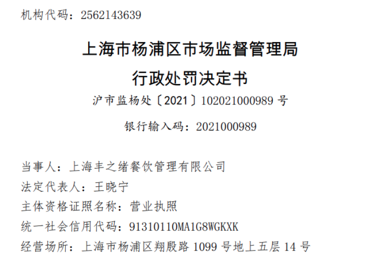 经查,“一绪寿喜烧”运营主体为上海丰之绪餐饮管理有限公司。2020年5月1日至2021年9月14日期间,该公司在上海地区的“一绪寿喜烧”门店均存在以上问题。