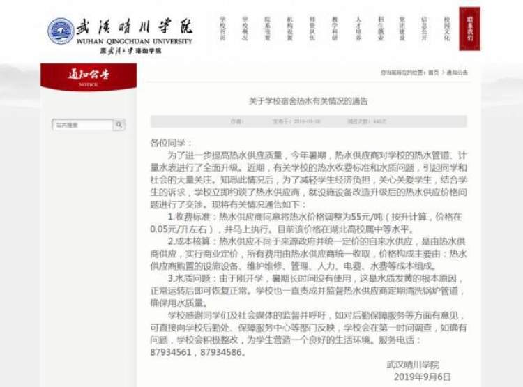 经过后勤处、学工处老师的调查,发现水价异常情况确实存在。该高校随后发布通报,表示将确保热水正常供应,并把价格调至40元/吨。