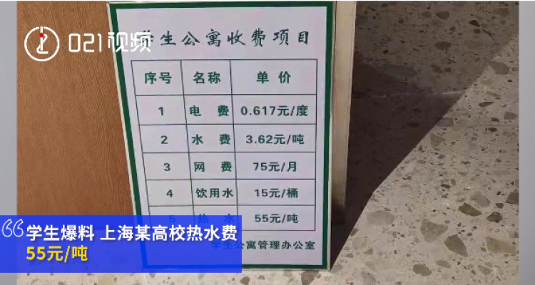 据@021视频 ,有学生近日爆料称,上海某高校的热水收费为55元/吨。消息一出便引发网友热议↓