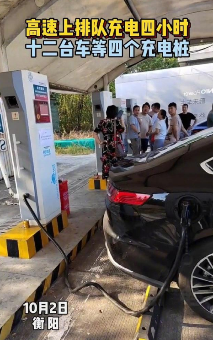 同样是国庆假期,有车主反映充电难问题:服务区充电要排队4个小时,一二十台新能源车等四个充电桩↓