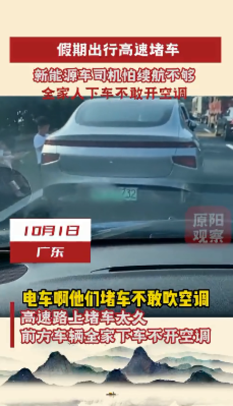 今年国庆节,有媒体报道,新能源车假期出行遇上堵车,车主怕续航不够,全家人下车不敢开空调↓