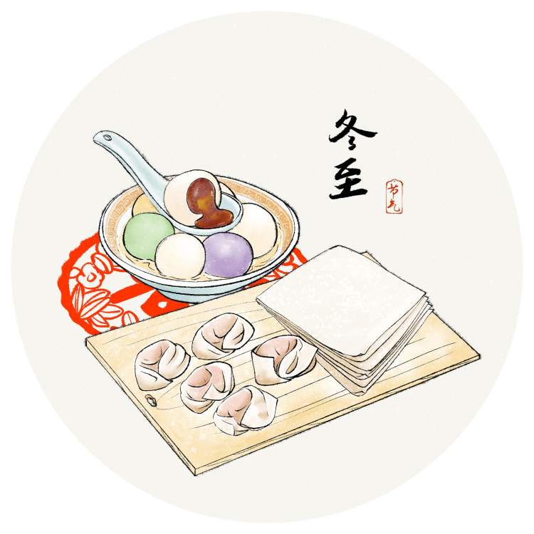 现在冬至,说什么吃馄饨吃饺子,其实上班族很少有真的自己动手擀面做馅的,很多人也未必当天吃馄饨饺子。但在微信里发一张祝福卡片,图上有个馄饨饺子的意思在,冬至大如年,还是当回事的。我家也就是冬至夜要早回家,吃方面没有大讲究,小时候要吃汤圆。其实,在湖北等地,也将馄饨当成水饺,也有人称馄饨为汤饺。总之,取个吉祥之意。交子时刻(编者按:饺子与“交子”谐音,旧年新年交汇于子时,饺子就是这么来的),祝福新年。
