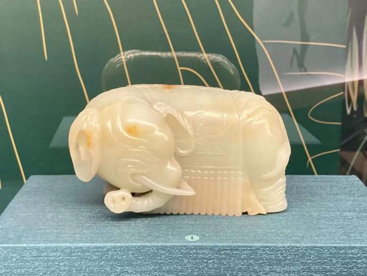清代圆雕白玉大象,身材高大,四蹄粗壮,圆润稳重,蕴含着河清海晏、民康物阜的吉祥寓意。