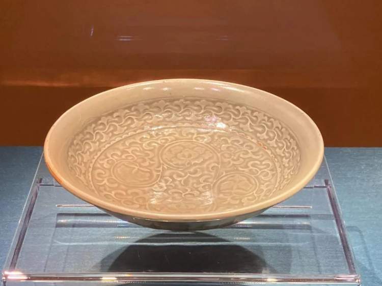 耀州窑“赵”字款缠枝牡丹纹盘,纹饰布局严谨,疏密有致,立体感强,是宋代耀州窑的佳品,而且带有姓氏款记,在传世的耀州窑产品中殊为稀见。