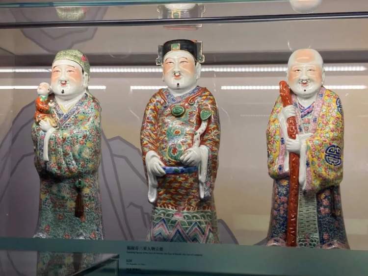 展厅内还有一组福禄寿三星人物雕像,则是人们最熟悉的吉祥文化形象。