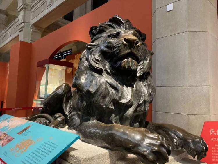 上历博镇馆之宝、原外滩汇丰银行门口的铜狮子,此次也作为展品出现,它为观众讲述了中西方传统文化中的狮子意象;清同治年间静安寺涌泉石狮护栏上,立着一个圆雕狮子,其形象在威严中略带憨态,显示守护一方的民间愿望。