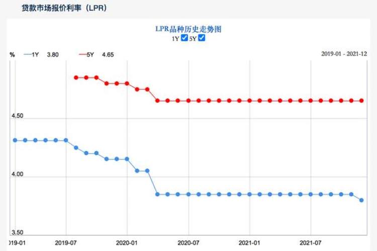 12月20日,新一轮LPR正式公布,其中一年期LPR从3.85%下降到3.8%,下降5个基点。不过,这一次5年期LPR并没有跟1年期LPR保持同步,5年期LPR仍然维持在4.65%。