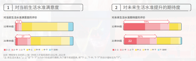 “对当前生活水准满意度”(左)和“对未来生活水准提升的期待度”(右)