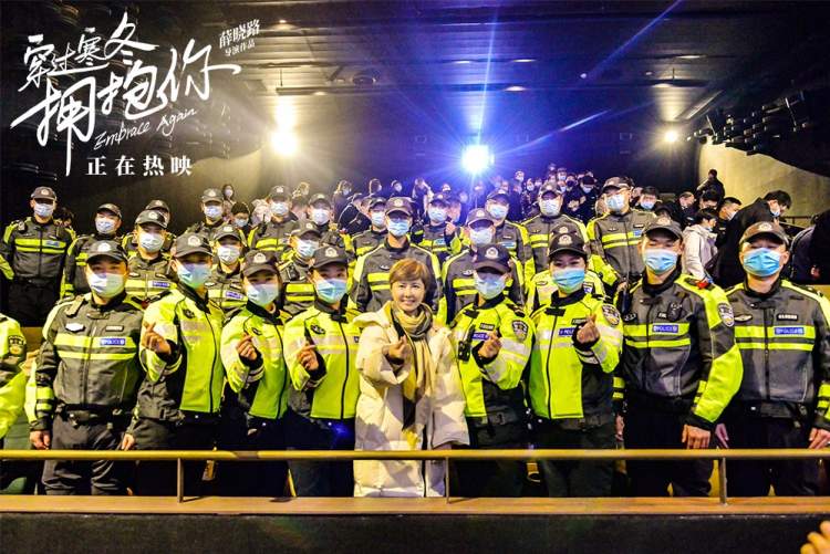 现场身着统一制服的交警们用诚挚的敬礼致谢影片主创,片中武汉解封后,交警车队行驶过鹦鹉洲大桥的那场戏,正是在汉警快骑机动队的帮助下完成了拍摄。