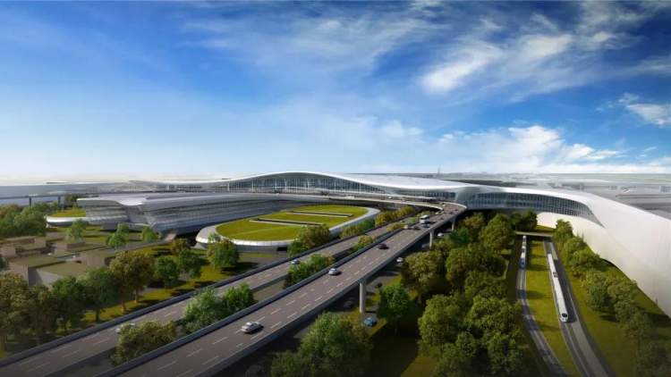 航站区则通过6米层人行主轴串联起到达大厅、停车楼、综合交通换乘厅及配套附属设施等功能,并与自贸区新片区相连,以集约高效的枢纽交通服务功能为未来自贸区新片区的发展奠定基础。