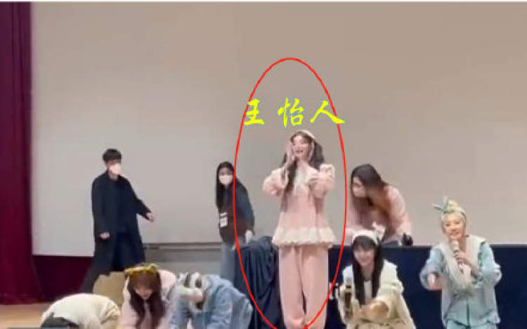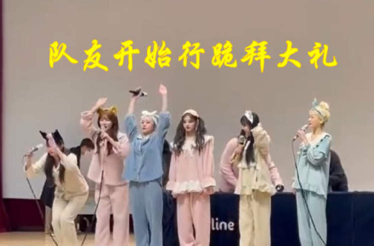 她在成员行大礼期间先是拍拍手,后来双手合在一起握成拳头,做出中国式的拜年法,并喊着“恭喜发财”。