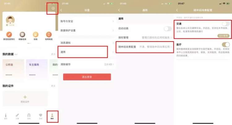 或者在“随申办”支付宝小程序首页下方点击 “我的”频道- “设置” -“随申码场景配置”,在交通中“开启交通场景”-“签约支付渠道”。