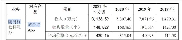 公司第二大业务是用于移动端的随身行软件服务,2020年该项业务收入5307万元,占其营业总收入29%。2018年10月开始,随身行软件服务由免费变收费,去年平均价格约420元一年。