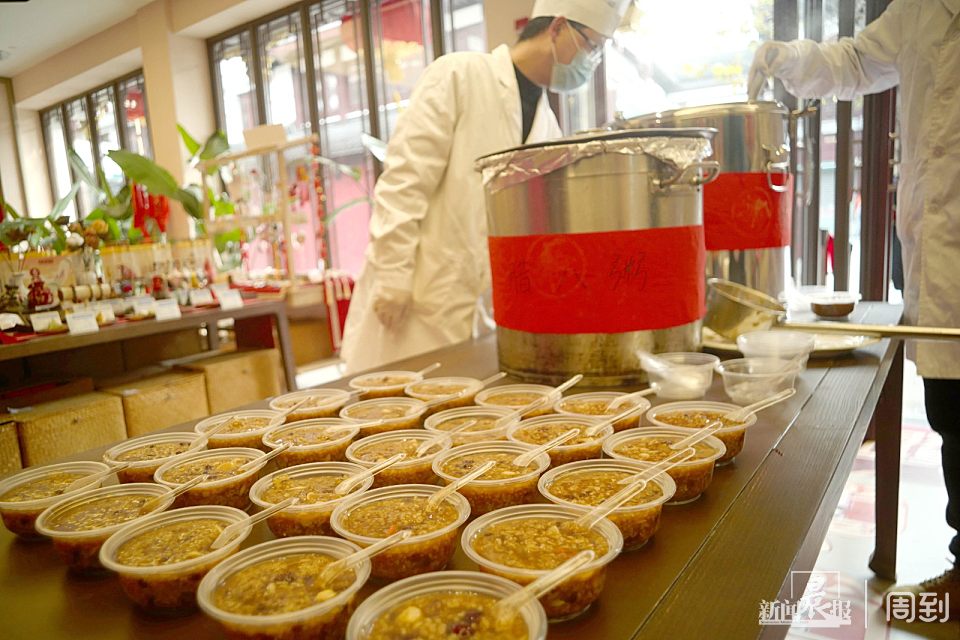 今天你喝腊八粥了吗?过了腊八就是年 | 晨镜头 任国强 2022-1-10 来源:周到上海 今天是农历十二月初八,中国传统的腊八节。一早,老城隍庙童涵春堂前就有市民排队,大家等待着一年一度的“腊八施粥”。 童涵春堂每年都有腊八施粥祈福的习俗,在老上海人心里,童涵春堂熬制的腊八粥特别正宗。喝上一碗香糯可口的腊八粥,才算过了一个热闹的腊八节。 童涵春堂的腊八粥食谱由大米、糯米、赤豆、白扁豆、花生、红枣、莲子、薏仁、枸杞、核桃等丰富食材、药材组成,寓意祈福康泰、来年平安高照。 来源:周到上海 作者:任国强 赞一个 (0)